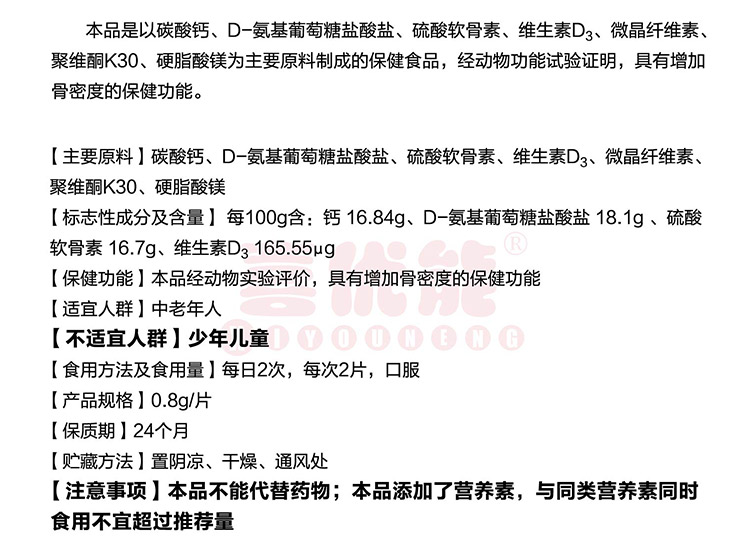 喜优能 氨糖软骨素维生素D钙片(4盒起购)¥125/盒